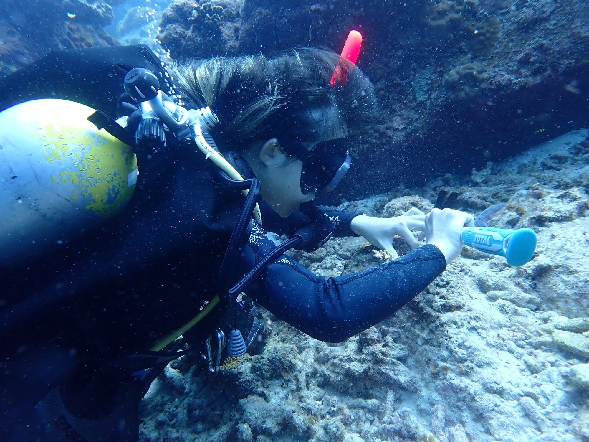 Newly employed as an assistant manager at PULIHARA (Marine Conservation and Research Organisation Malaysia, formerly known as Lang Tengah Turtle Watch), I spend most of my days doing coral restoration dives and my nights patrolling the nesting beaches for the critically endangered hawksbill and endangered green sea turtles. I also welcome and onboard new interns and volunteers to the island.