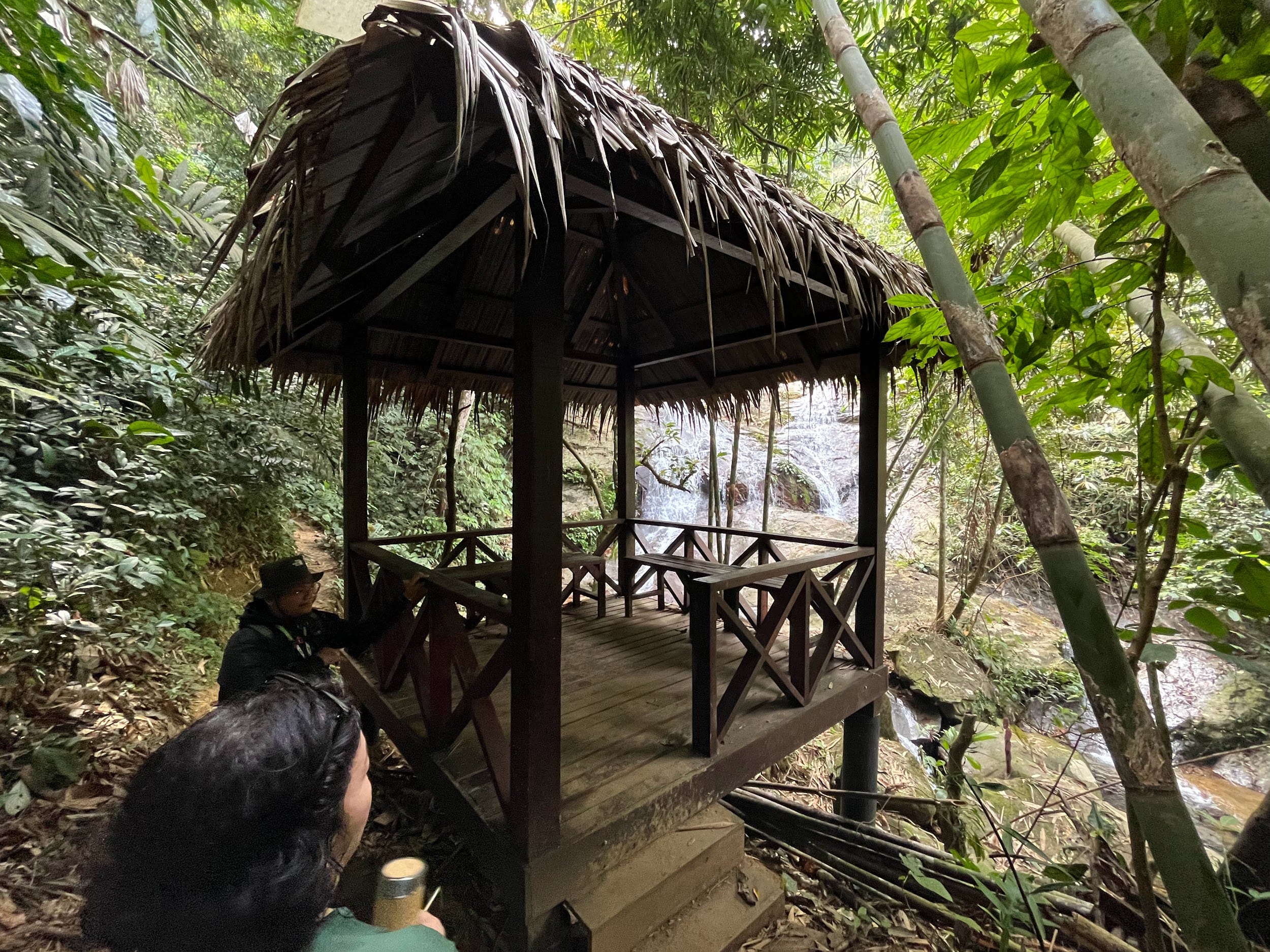 However, we definitely recommend staying longer, dipping in the pools and looking out for wildlife. We first stopped at level three of the seven-tiered falls, where a hut made of chengal wood and nipah sits overlooking a smaller waterfall. Haziq shared that there have been special times when these falls were filled with butterflies.